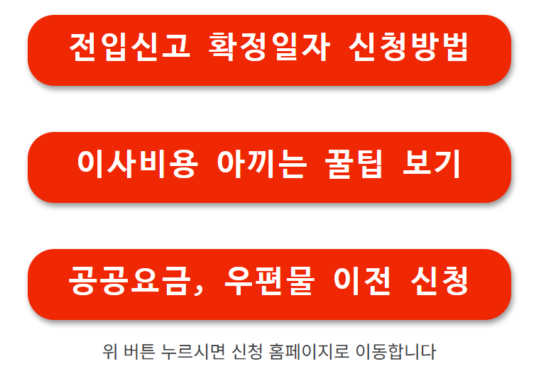| 1주 전 | 공공요금 이전, 주소 변경 준비 | 은행·통신사·택배 주소 수정 |